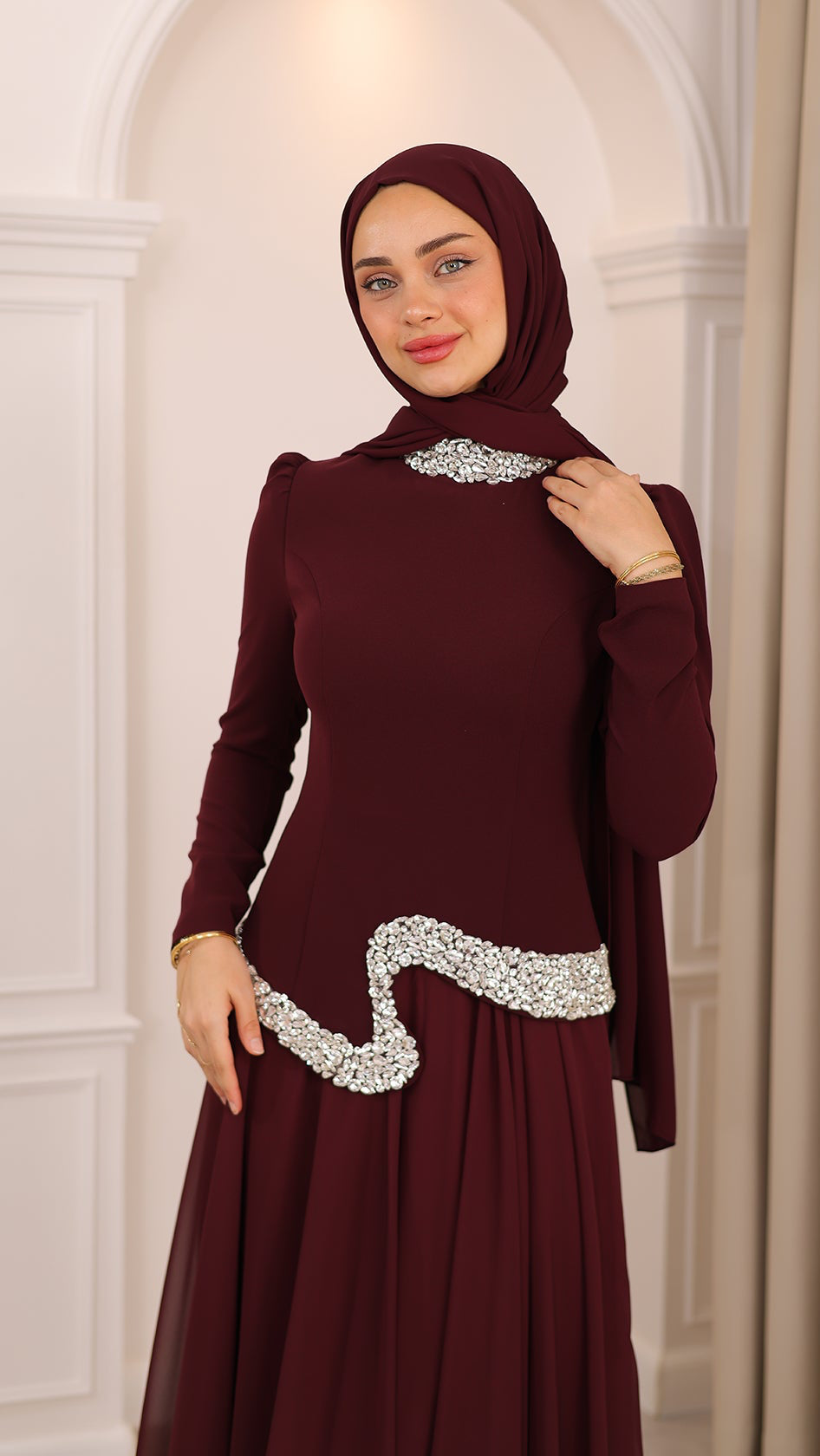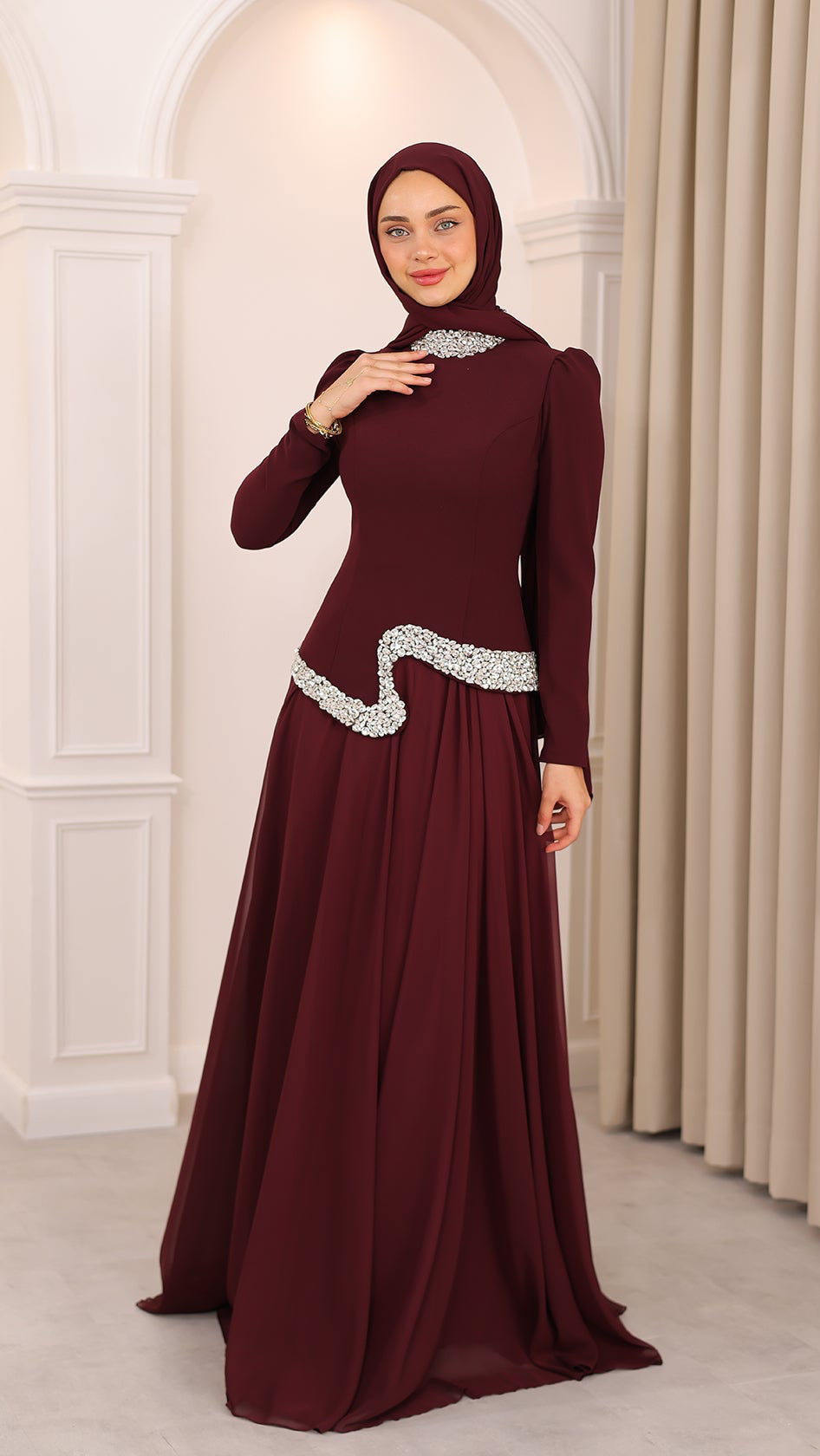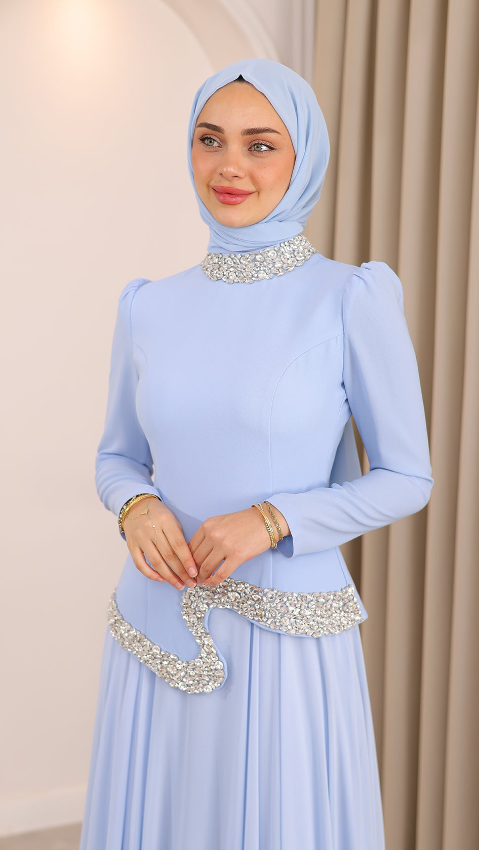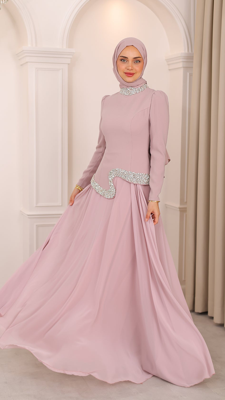 Zarafetin modern yorumunu taşıyan bu abiye, akıcı duruşu ve ince detaylarıyla büyüleyici bir siluet oluşturur. Beden kısmında kullanılan krep kumaş, formu mükemmel şekilde sararken, ultra kilo şifon eteği her adımda zarif bir hareket kazandırır. Özel günlerde hafifliğiyle konfor sunarken, göz alıcı duruşuyla unutulmaz bir şıklık sağlar.