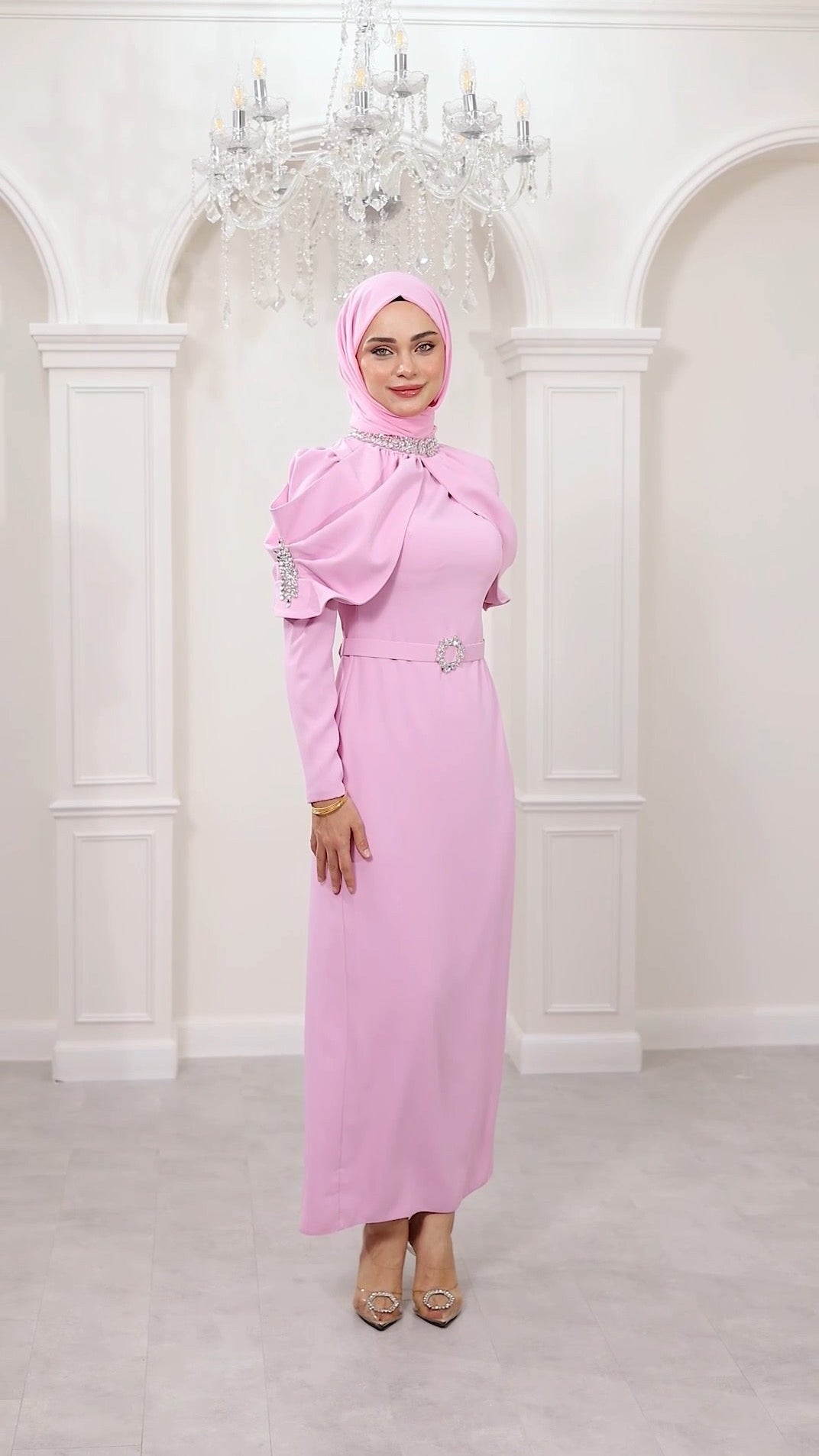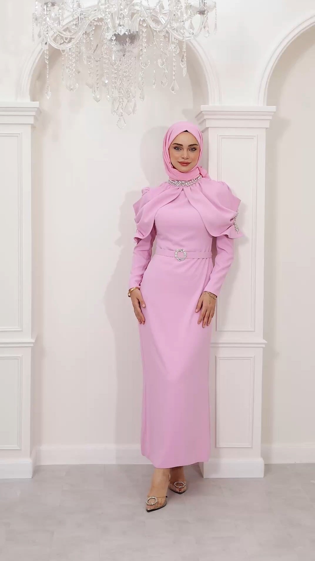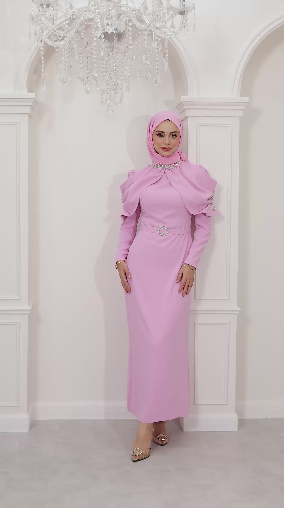 Zarafetin ve sadeliğin buluştuğu bu özel tasarım tesettür abiye, yumuşacık dokusuyla öne çıkan merve kumaştanüretilmiştir. Akıcı yapısı sayesinde vücuda zarif bir şekilde oturur, gün boyu rahatlık sunar.